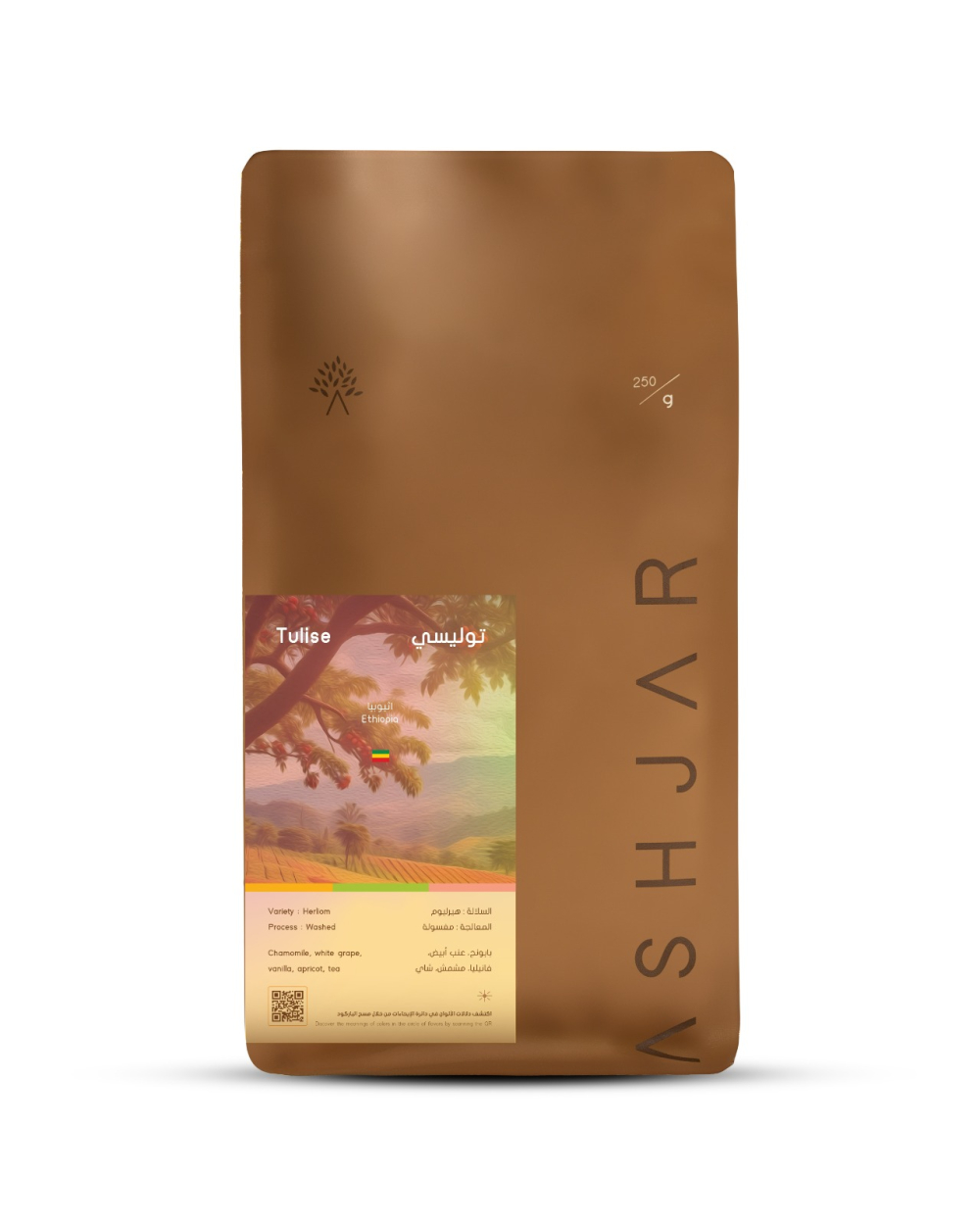 Name : Ethiopia Tulise (87 pts) Process : Washed Variety : Heirlom Moisture : 11% Density : 712 Water activity : 0.56 Altitude : 1900-2200 masl Cupping note : Chamomile, White grape, Vanilla, Apricot, Tea like
